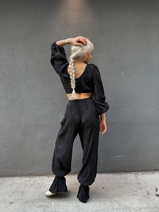 Black Satin Pleated Pants