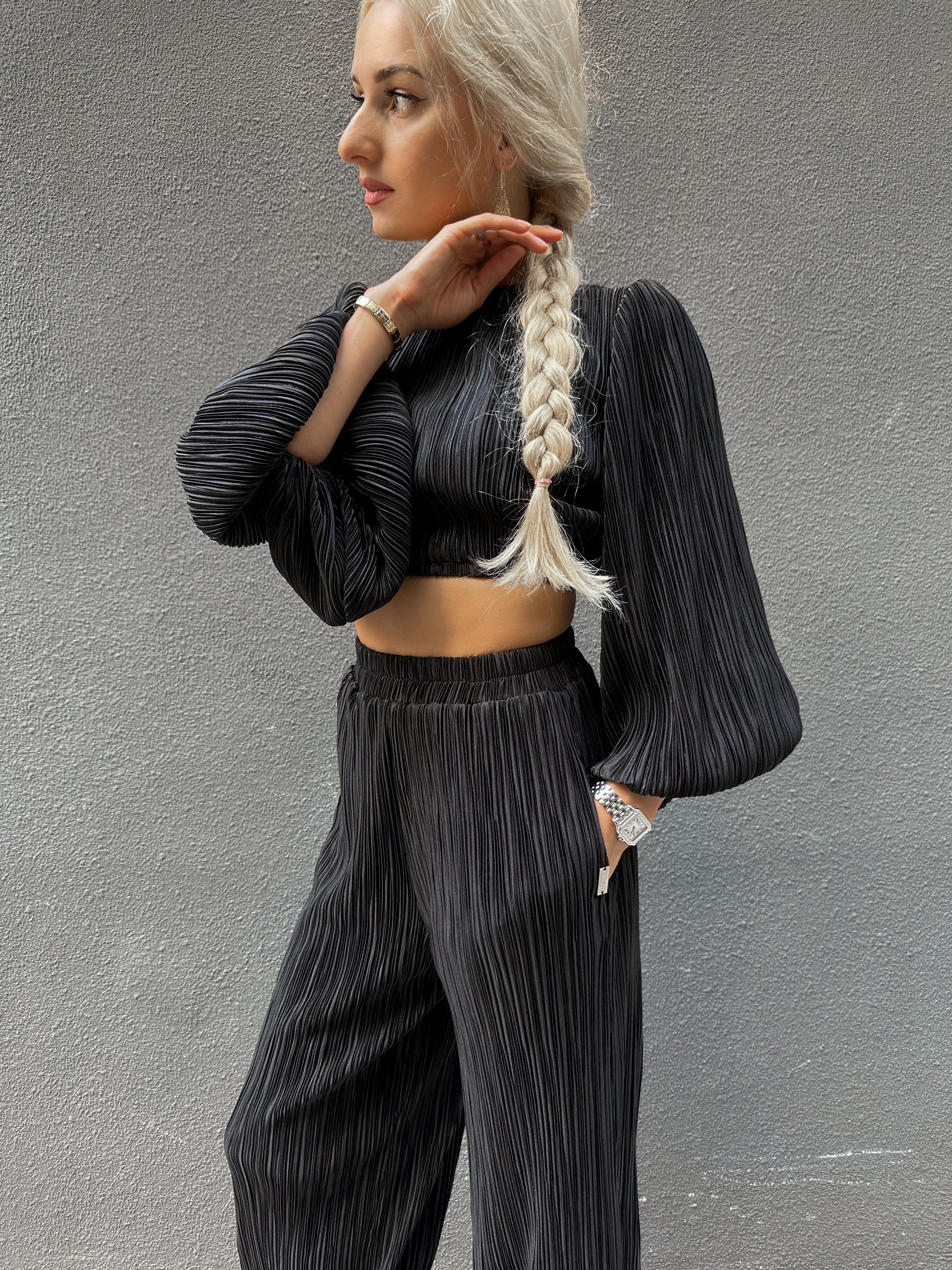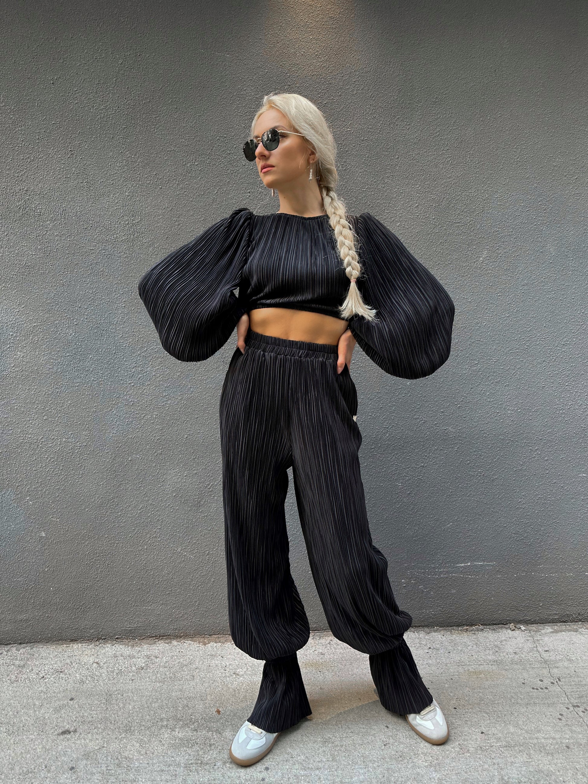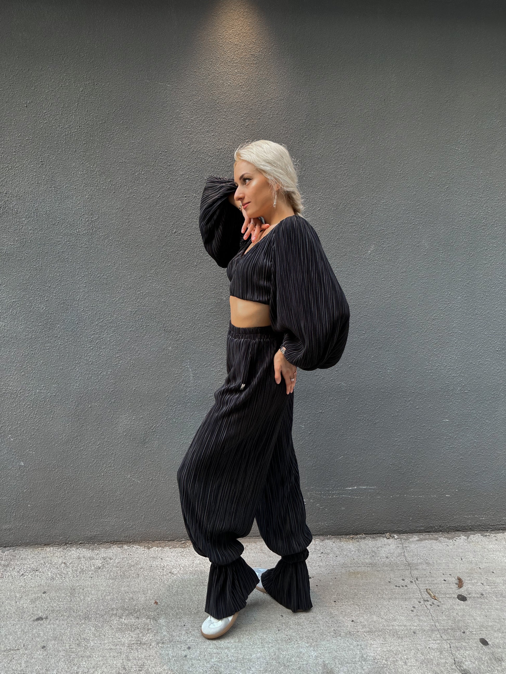 Black Satin Pleated Pants is an essential style with a twist suitable for your ballroom, smooth trainings or teaching or even a night out. Light and flowy material will make you feel comfortable yet luxurious. Goes great with our Satin Pleated Crop Tops in all colors. Fix the length on the pants with removable elastics according to your wishes.