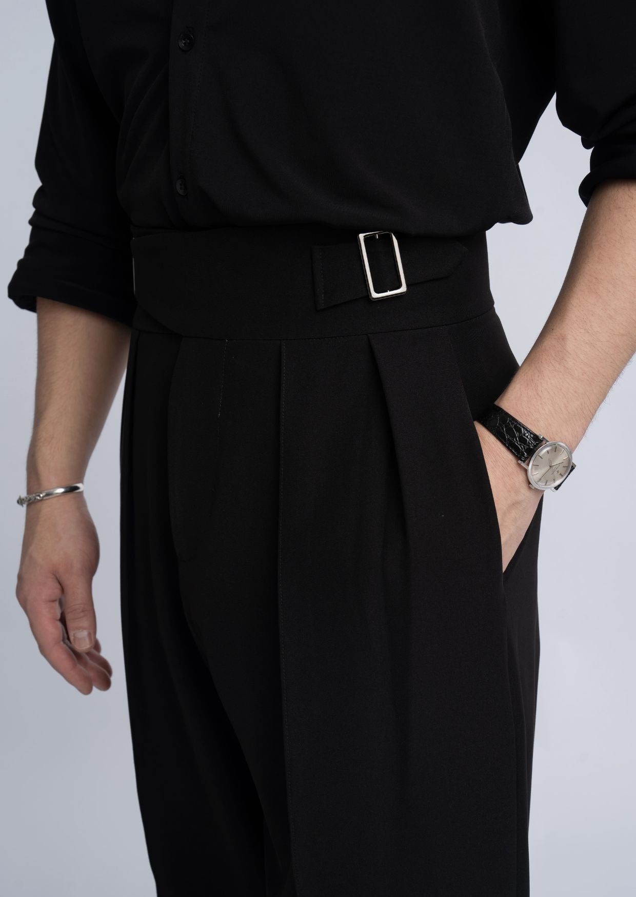 Gurkha Pants is a high waisted style with pleated front that is perfectly suitable for your dance practice of any style or even competitions or shows. Waist of the pants has an elegant buckled detailing as well as high quality hand-made stitching on the inside. Easy match and a definite necessity in a men's closet.