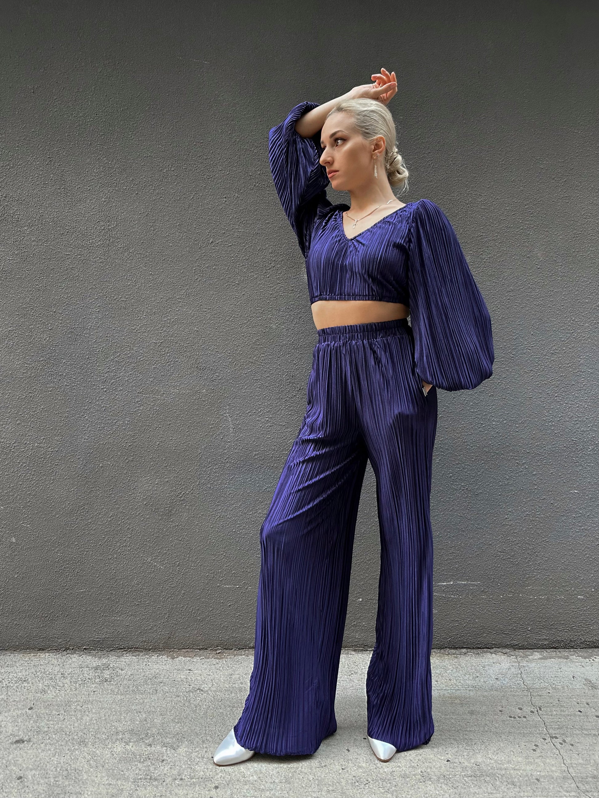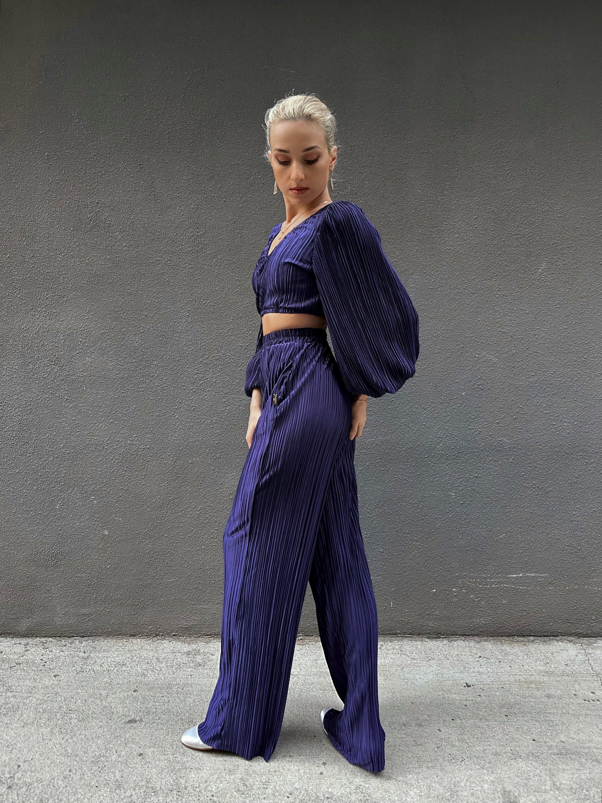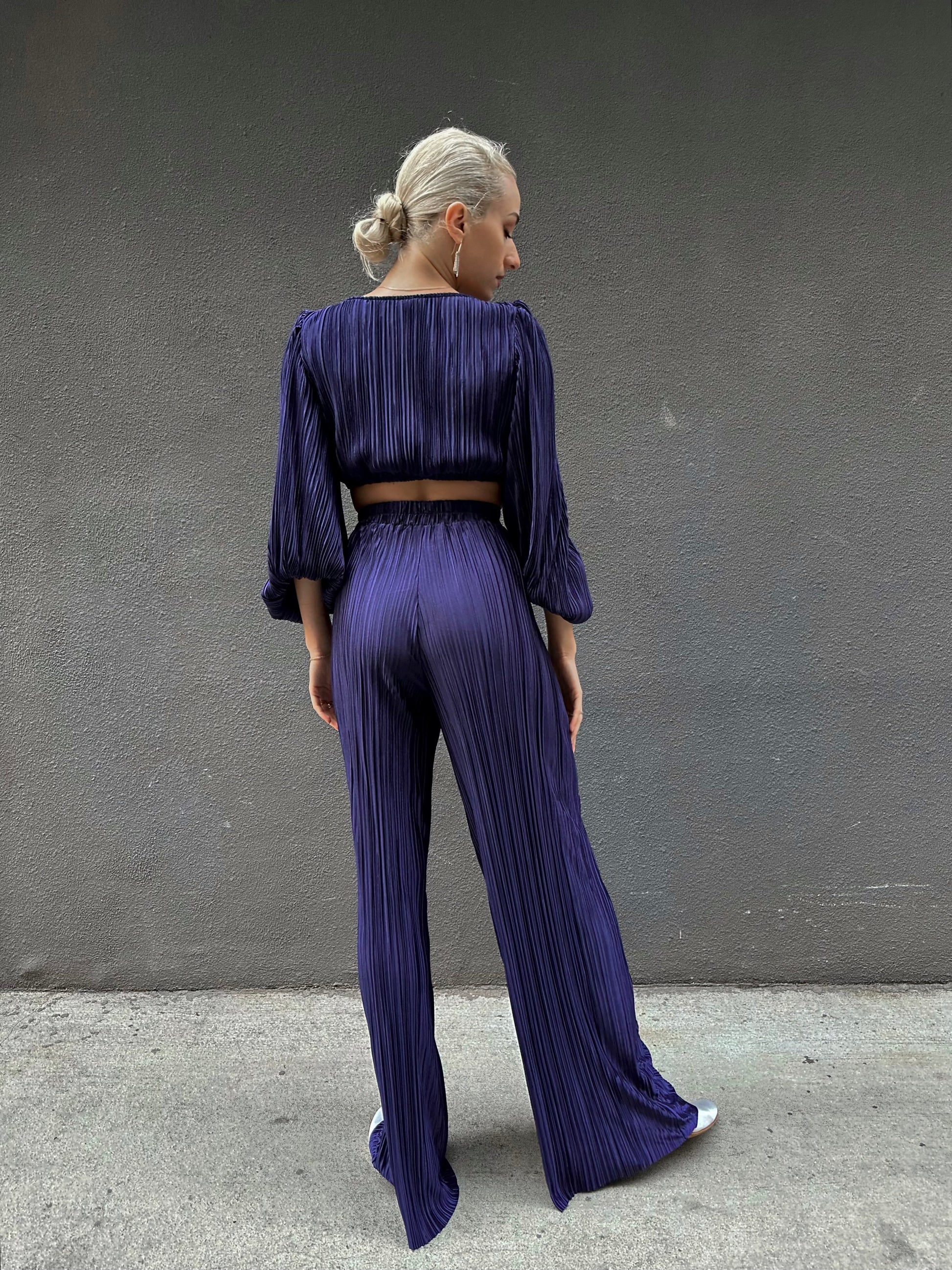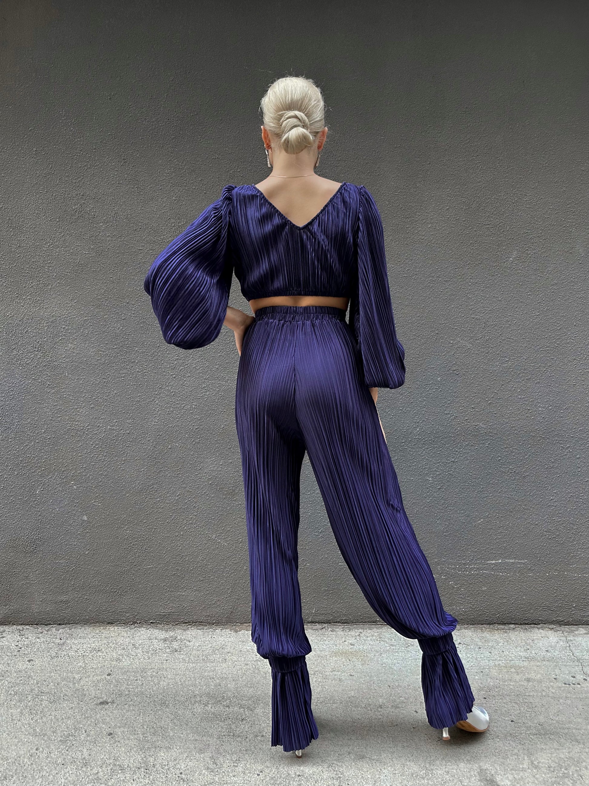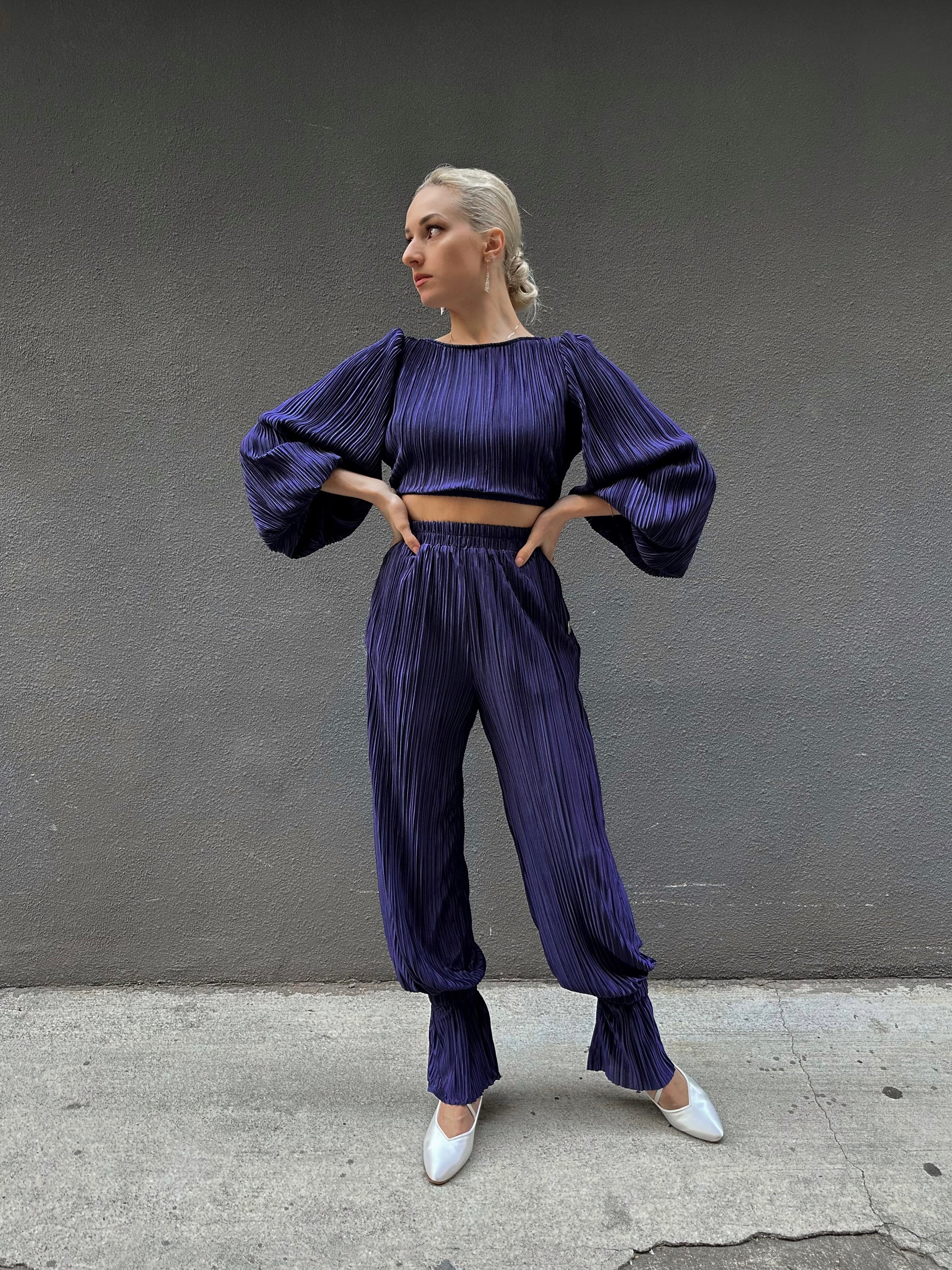 Navy Blue Satin Pleated Crop Top is a reversible top suitable for your ballroom, smooth trainings or teaching or even a night out. Classical design yet with interesting twist. Light and flowy material will make you feel comfortable yet luxurious. Goes great with our Satin Pleated Pants in navy blue or any other color.