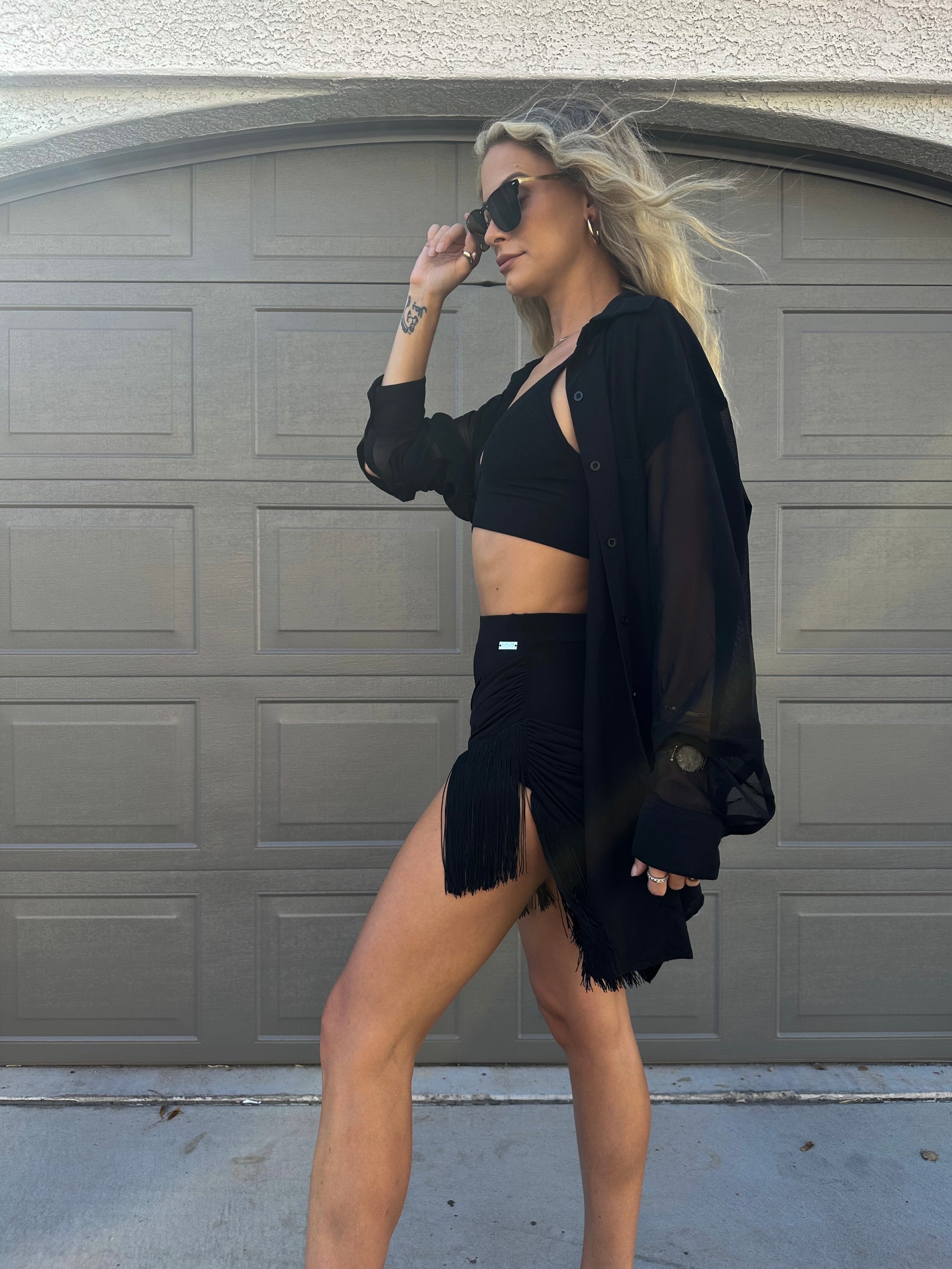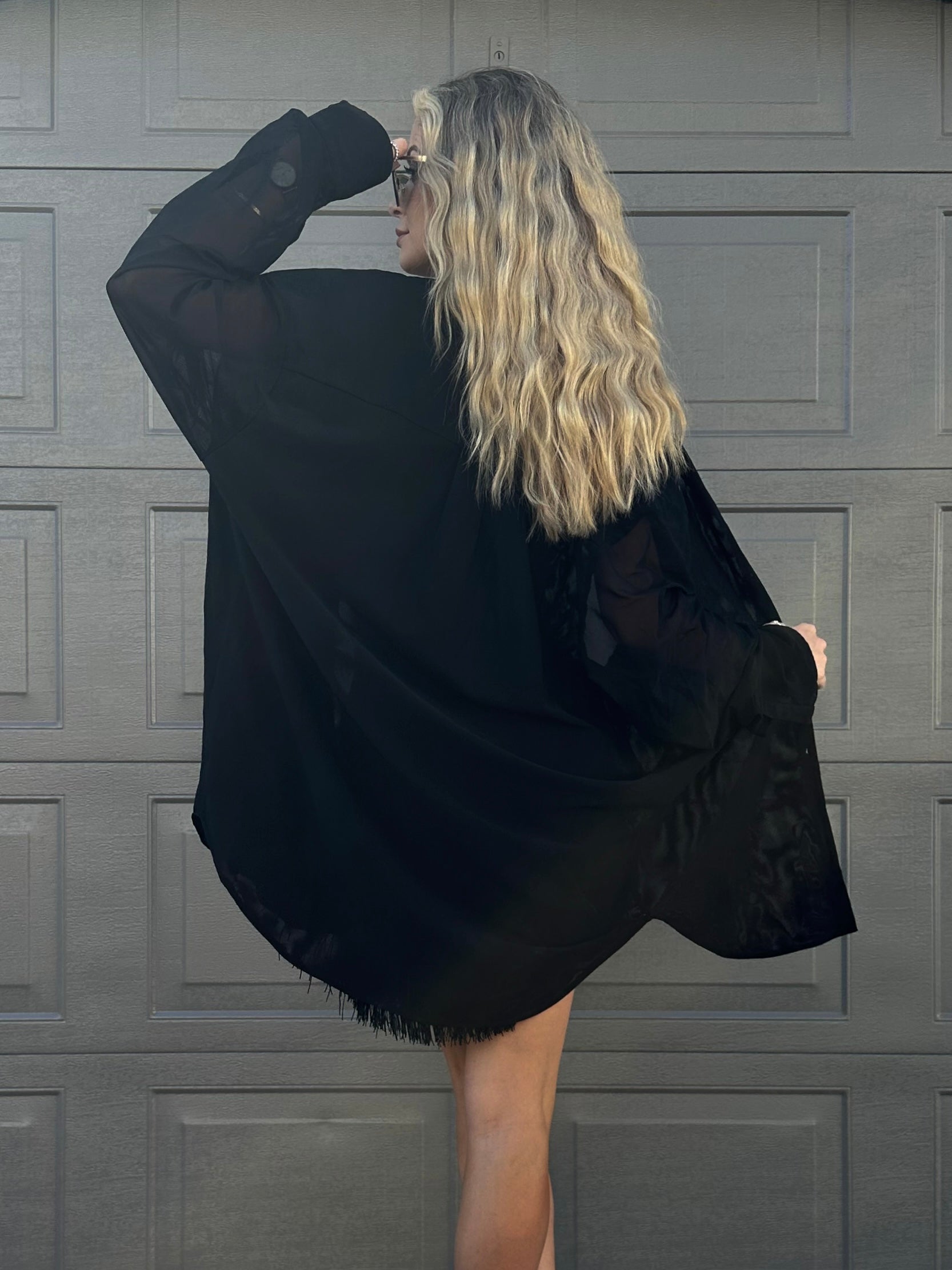 Oversized Net Dress Shirt has a double layered mesh front and back with single layered mesh sleeves. This perfect UNISEX piece comes in ONE SIZE and has multiple styling options. Wear it as a cardigan, dress styled with your favourite belt or without, or as a dress shirt itself. Breathable fabric suits perfectly hot summer weather.