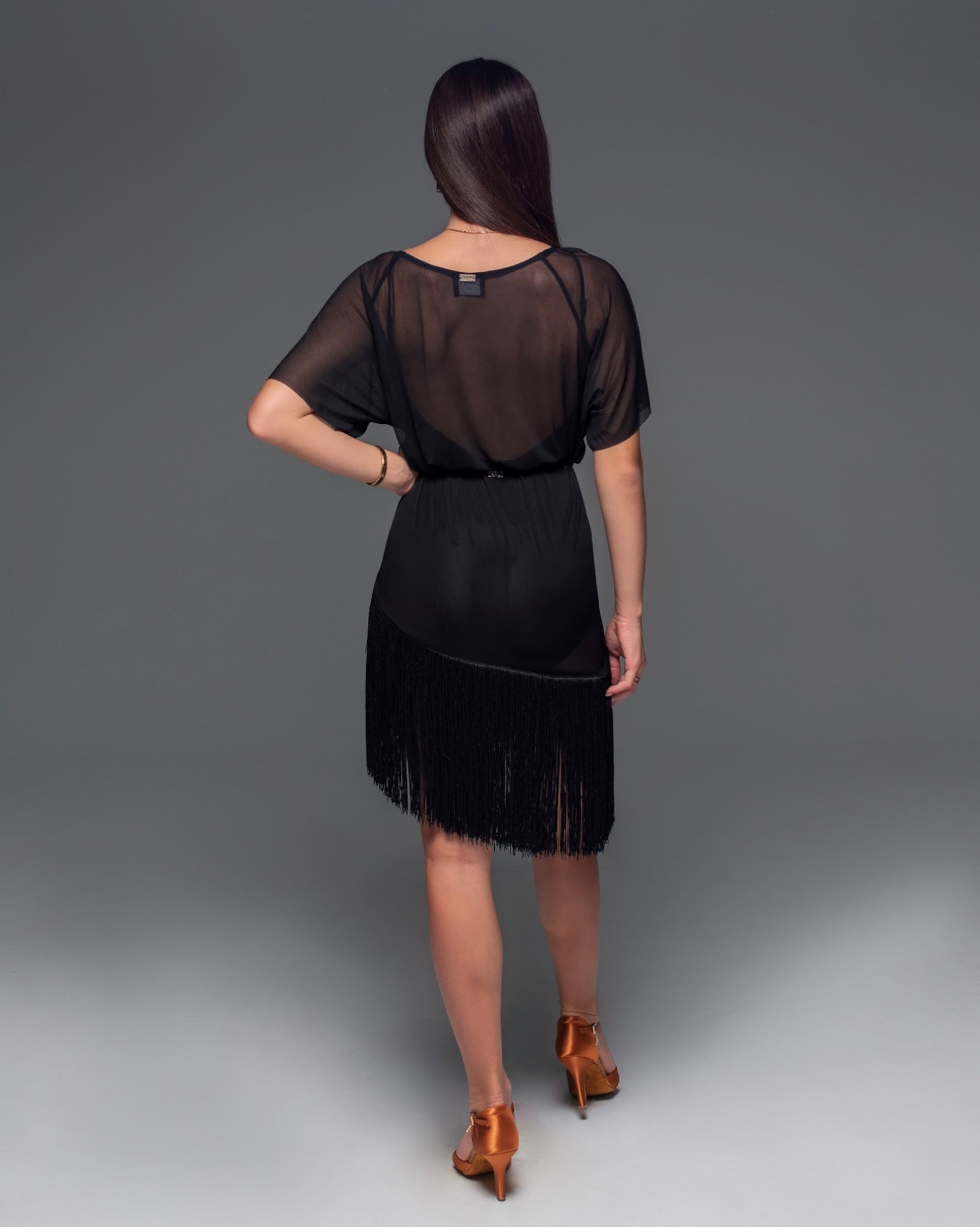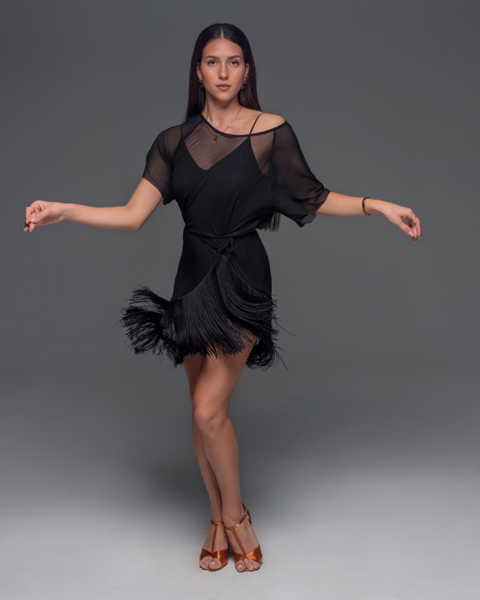 Oversized Net T-Shirt with Fringe is the most relaxed style yet so chic for your daily dance practice. Do your morning practice wearing this shirt or your night rounds. At any time of the day this shirt will help you reconnect with your inner latin personality and spirit. It's easy to match it with your favourite bodysuit and make it look like a dress, or pair it with your go-to leggings and never go wrong.